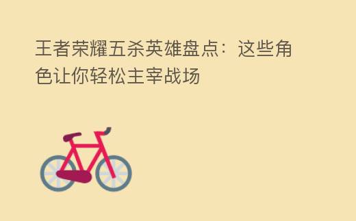 王者荣耀五杀英雄盘点:这些角色让你轻松主宰战场