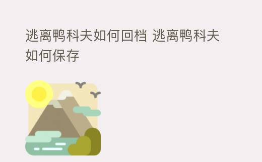 逃离鸭科夫如何回档 逃离鸭科夫如何保存